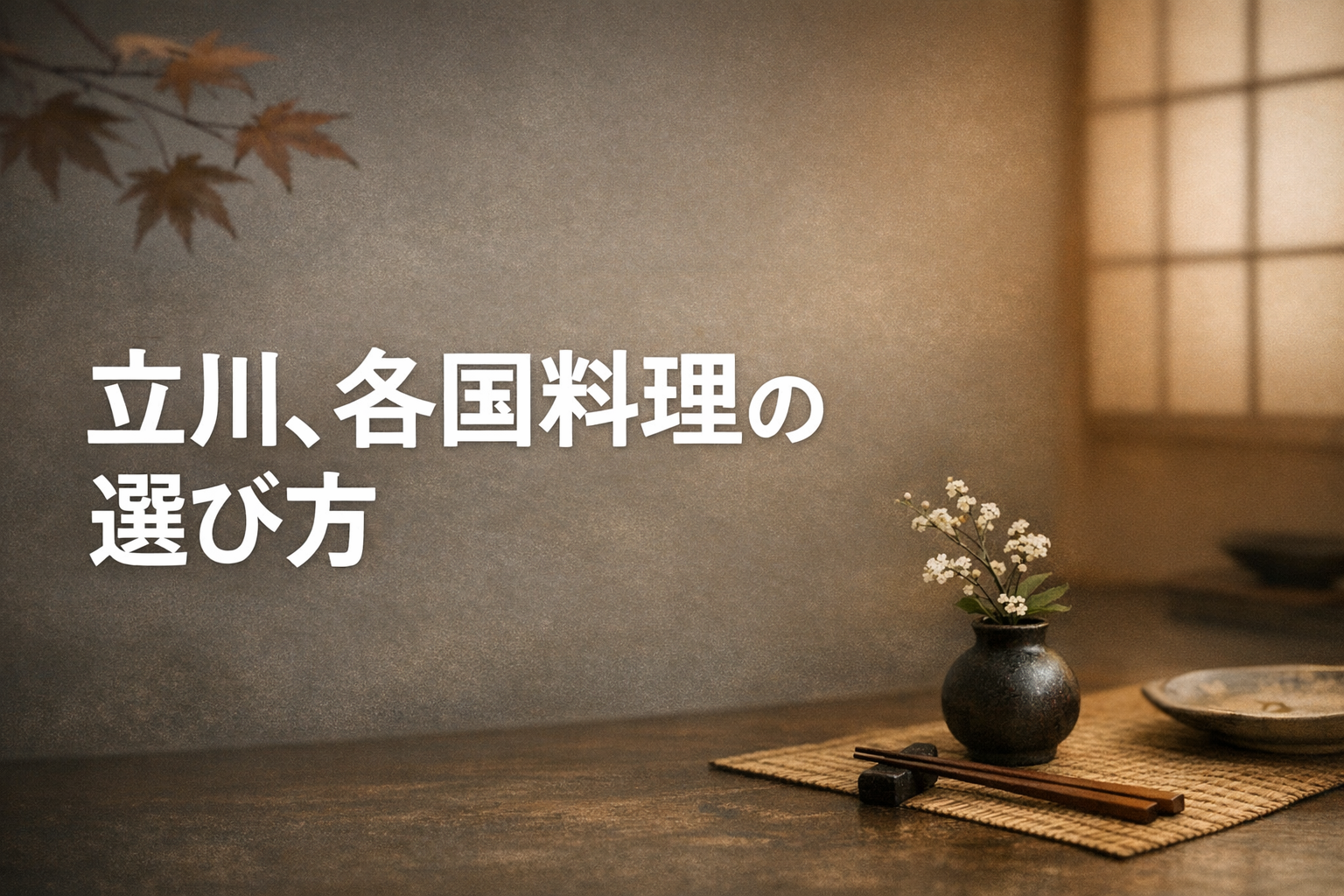 ここまで紹介してきたジャンルのほかに、立川では日本料理をベースにした食事処や、鉄板焼き・焼肉など「素材を焼く」スタイルの店も選択肢に入ります。ジャンルを選ぶとき、以下のような視点を持っておくと迷いが少なくなります。