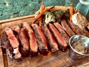 デートのディナーにぴったりな鉄板焼きメニューは、豪華さと美味しさを兼ね備えた料理が揃っています。まず、おすすめは特選ステーキです。熟成された牛肉を目の前で鉄板で焼き上げるステーキは、香ばしい香りとジューシーな食感が楽しめ、デートの雰囲気を一層盛り上げてくれます。肉の質感や焼き加減をシェフが調整してくれるので、一口ごとに絶品の味わいが広がります。