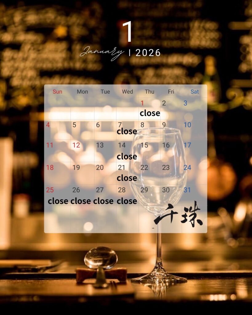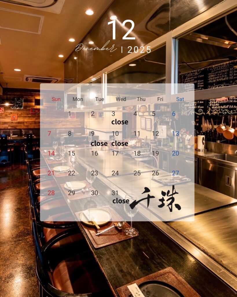 鉄板焼 千珠 12月・2026年1月の営業日のお知らせ